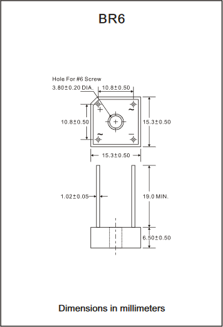 Pont redresseur monophasé, 6A 600V, BR-6, 4 broches